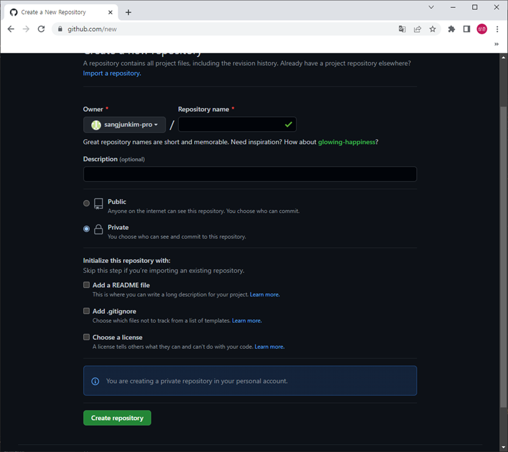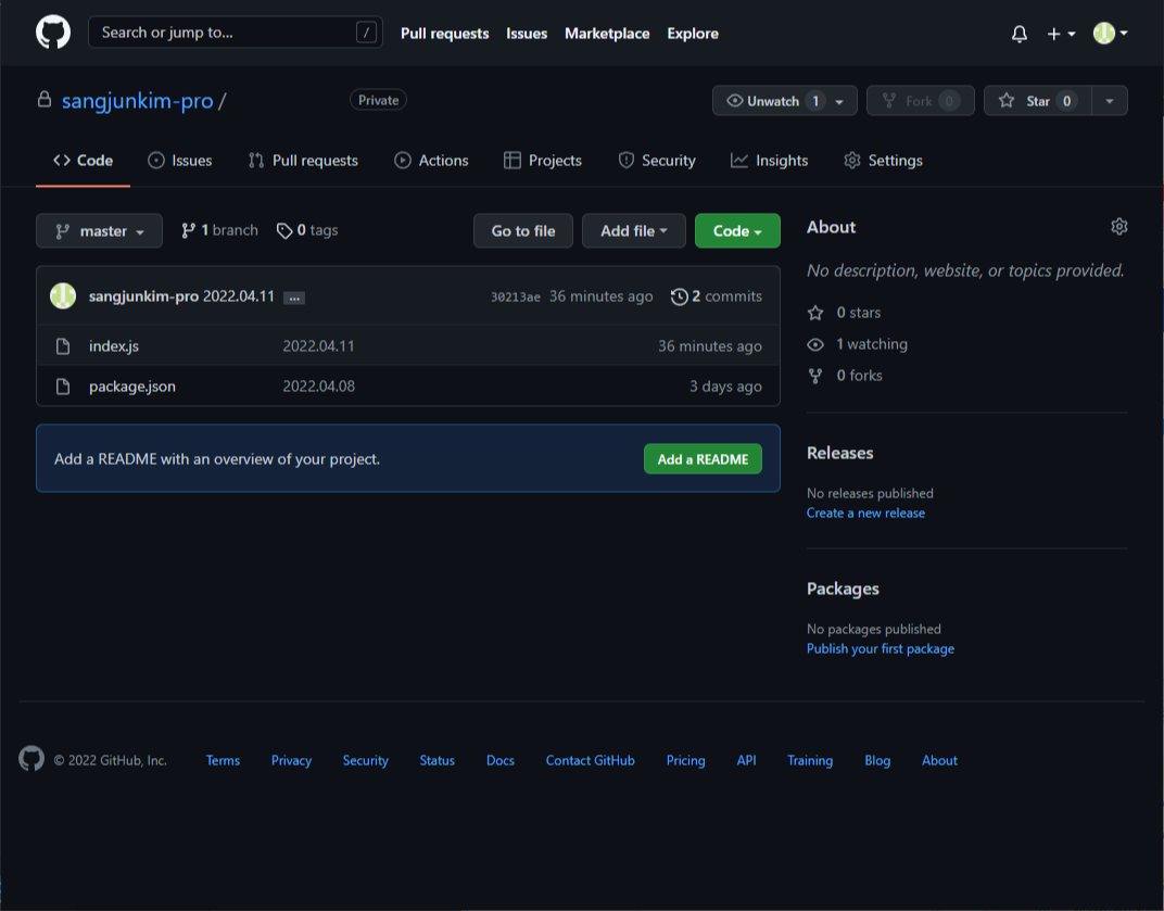 이전 포스팅에서는 로컬 저장소를 만들어봤으며 ( https://sangjunui.tistory.com/18 )