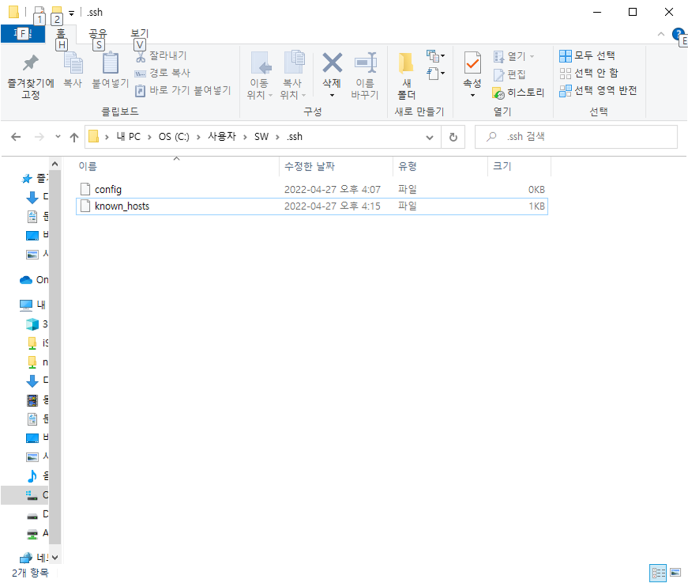 - 해당 key 가 있는 경로로 이동 후 known_hosts 파일 삭제