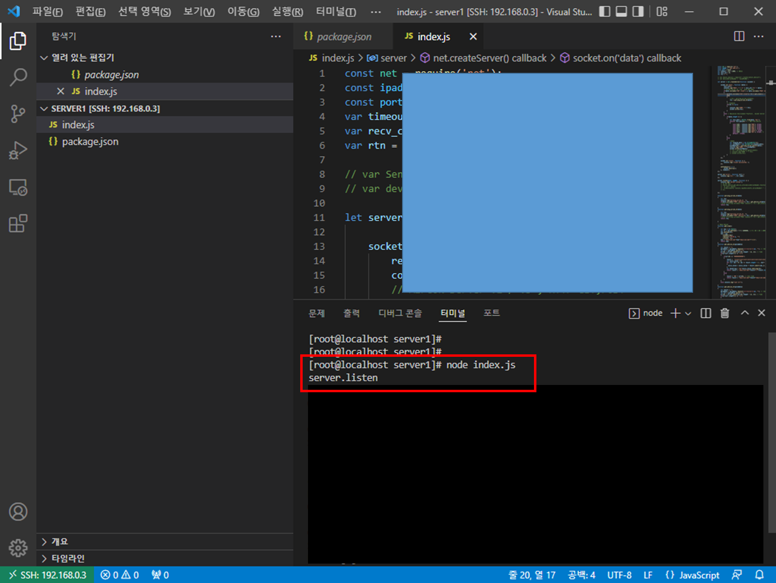 - 실행 ( node index.js )