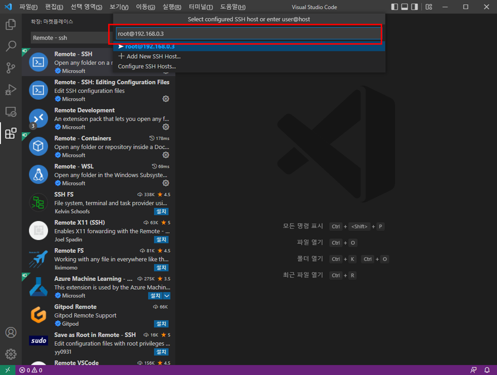 Remote-SSH Connect to Host... 선택