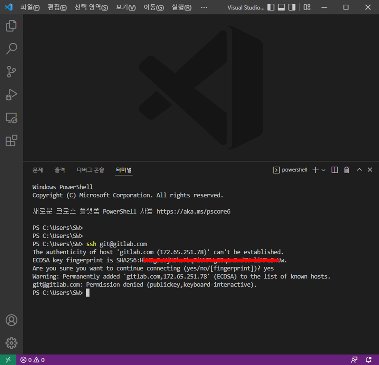 - vscode 터미널에서 key 재할당 ( ssh git@gitlab.com )