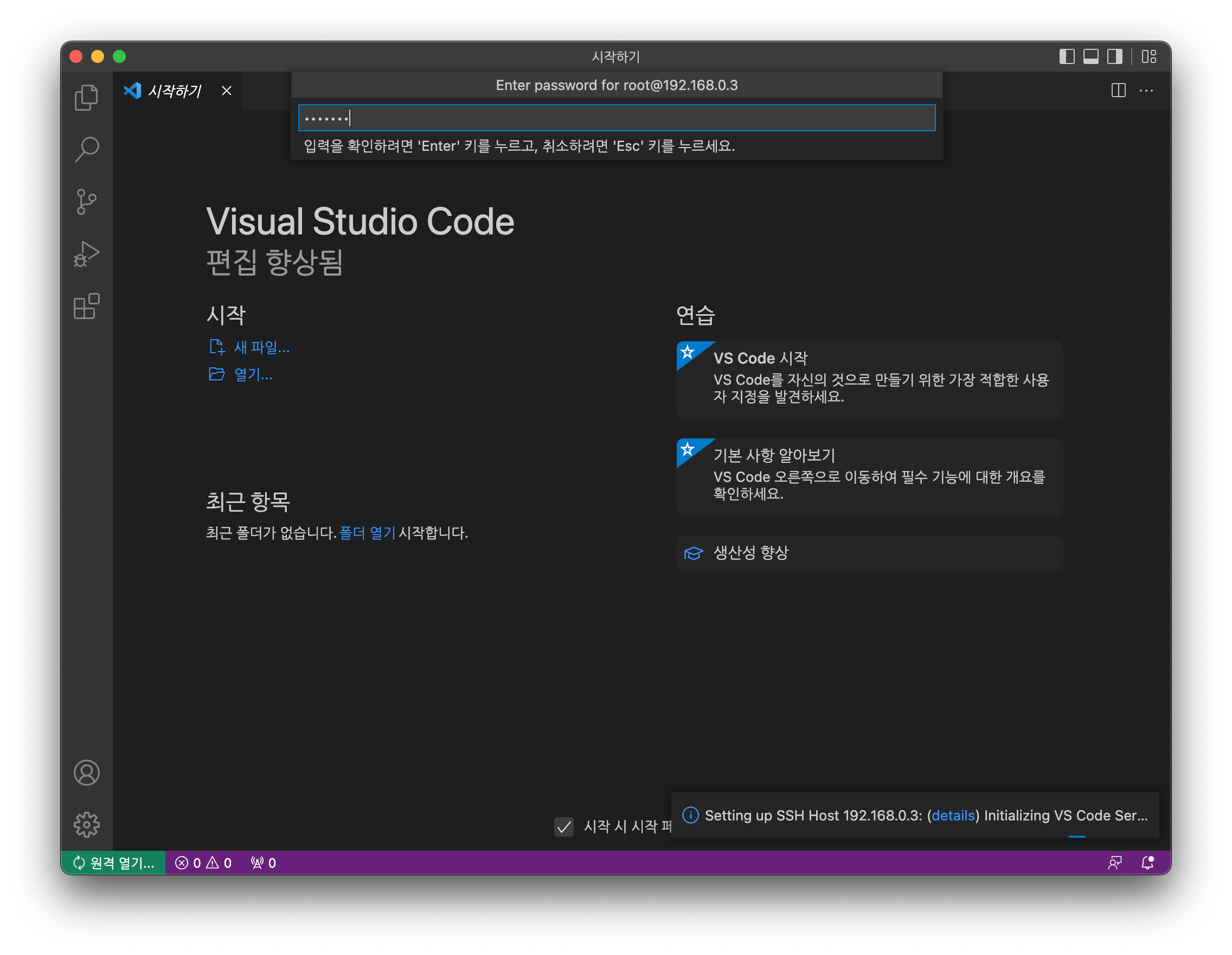 해당 서버 ID@serverip 입력 / 서버 Password 입력