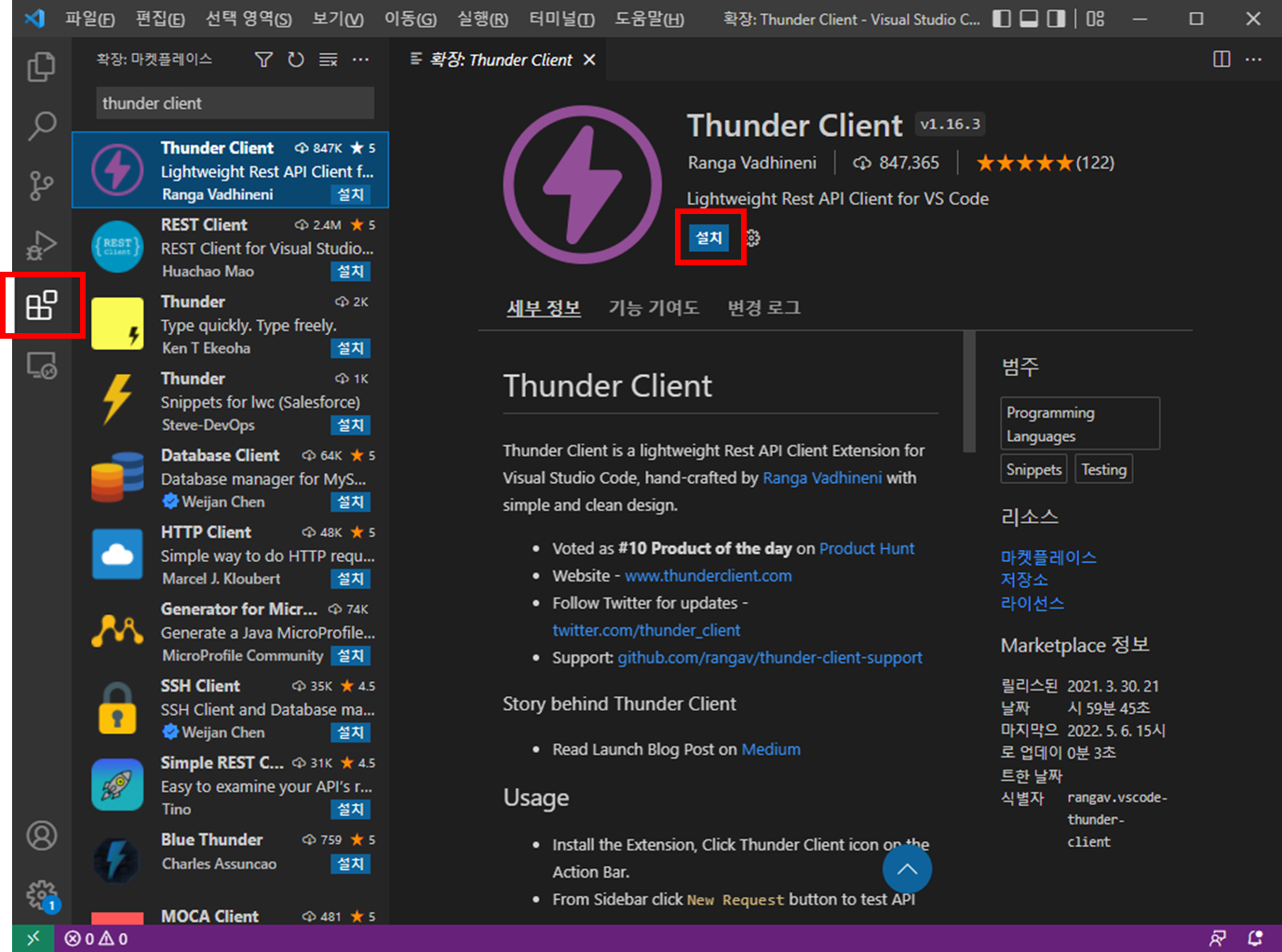 1. Thunder Client 설치