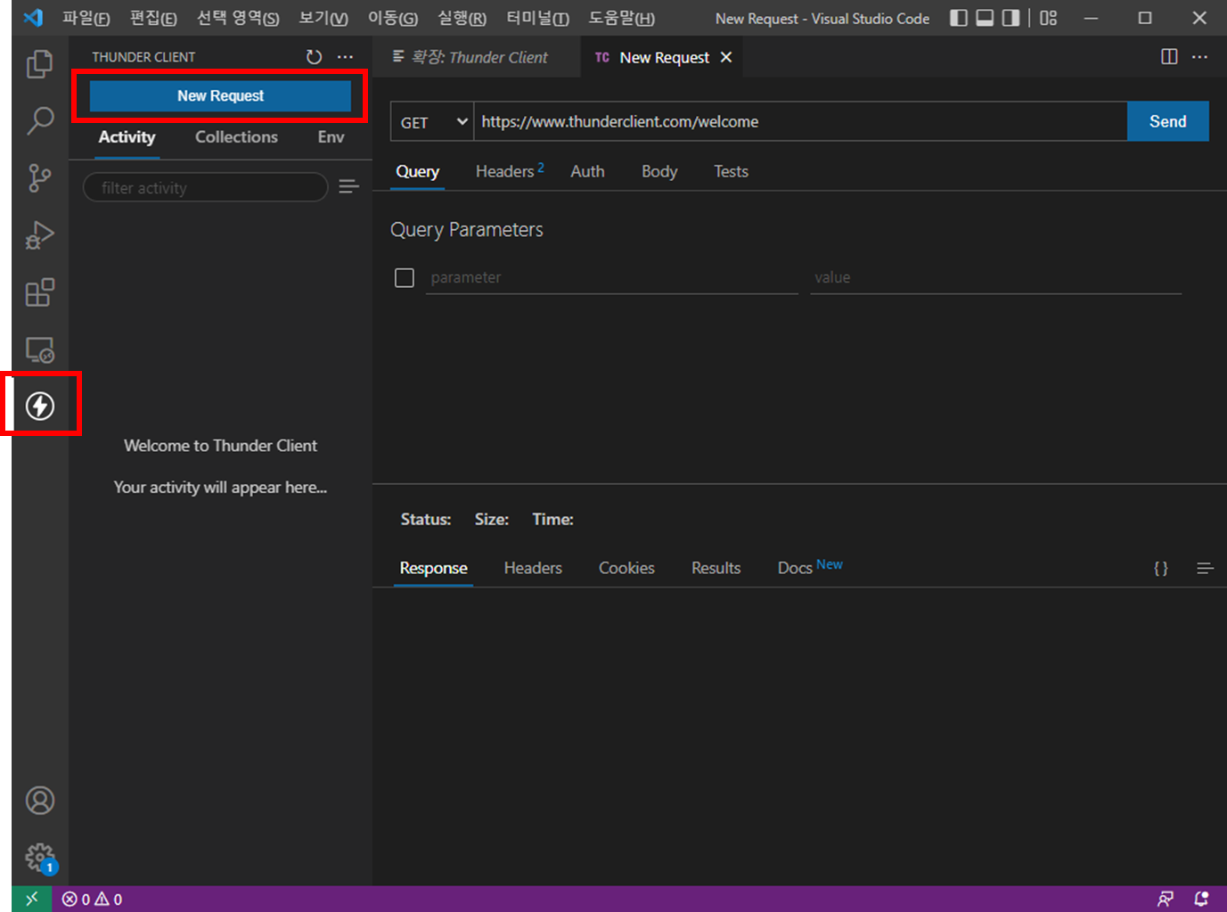 2. Thunder Clinet 실행 및 New Request 생성