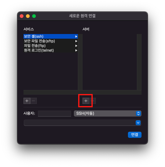 서버 추가 - address 입력 - 사용자 입력 - 계정 password 입력